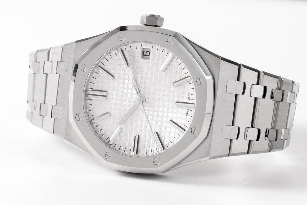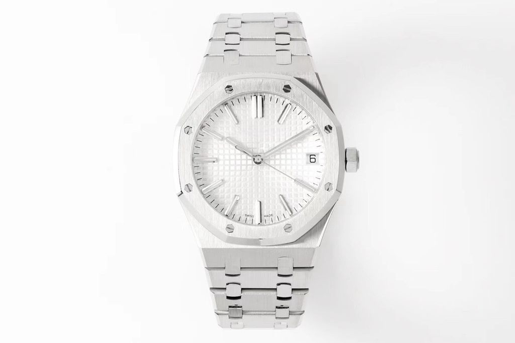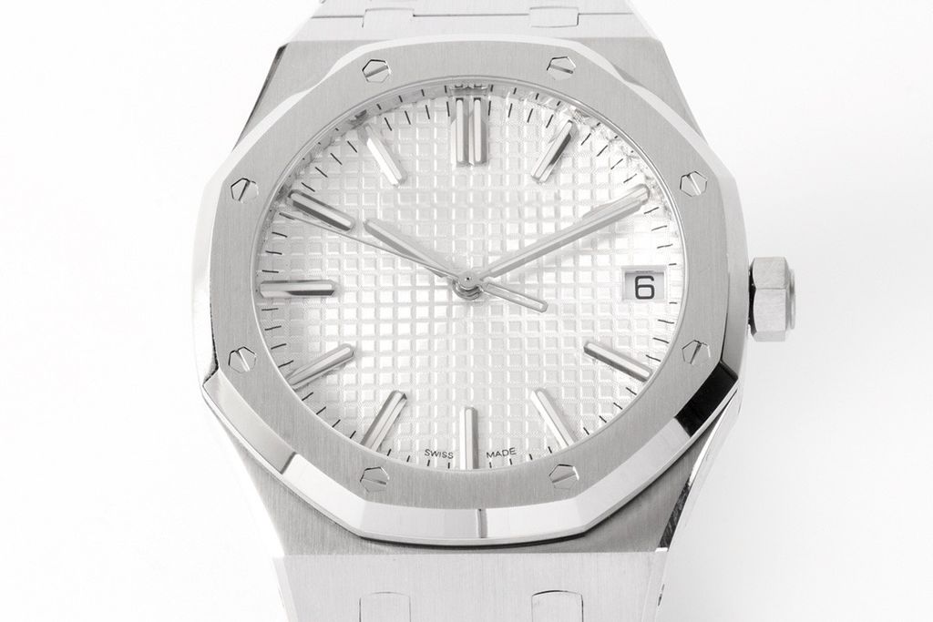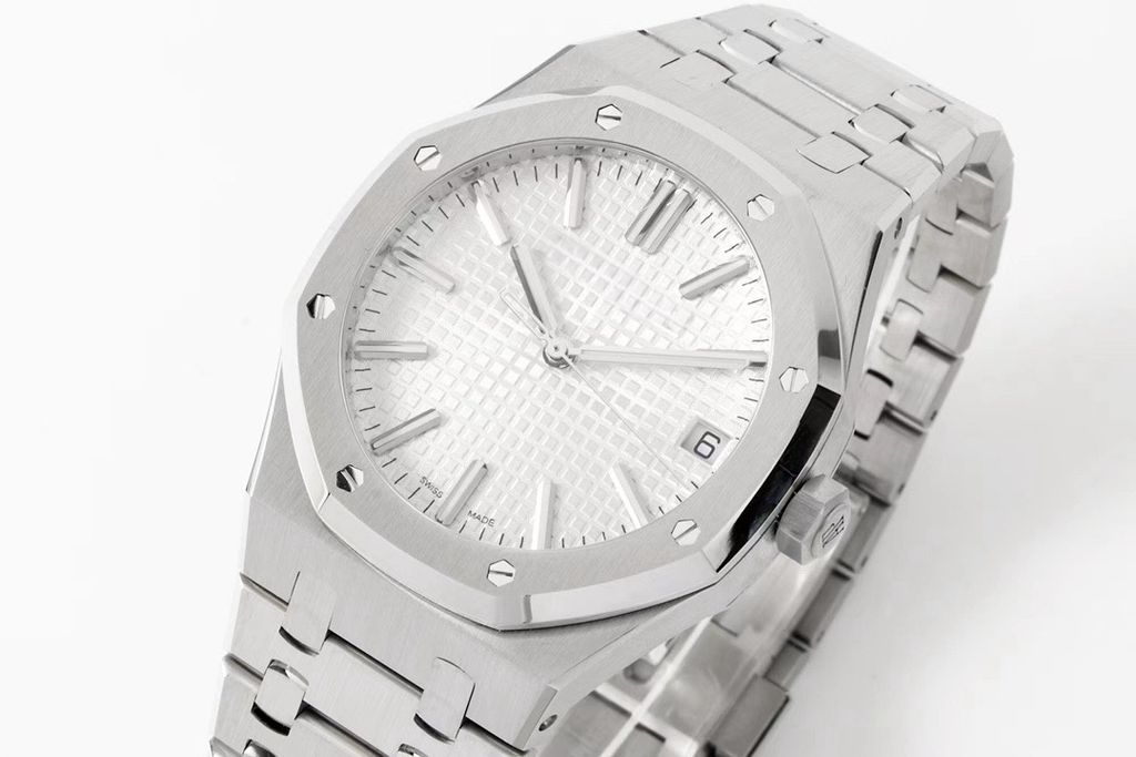 Top replica watch AP Royal Oak 50th Anniversary 15510ST ZF factory 41mm Tapisserie checkered white dial 316 stainless steel sapphire mirror