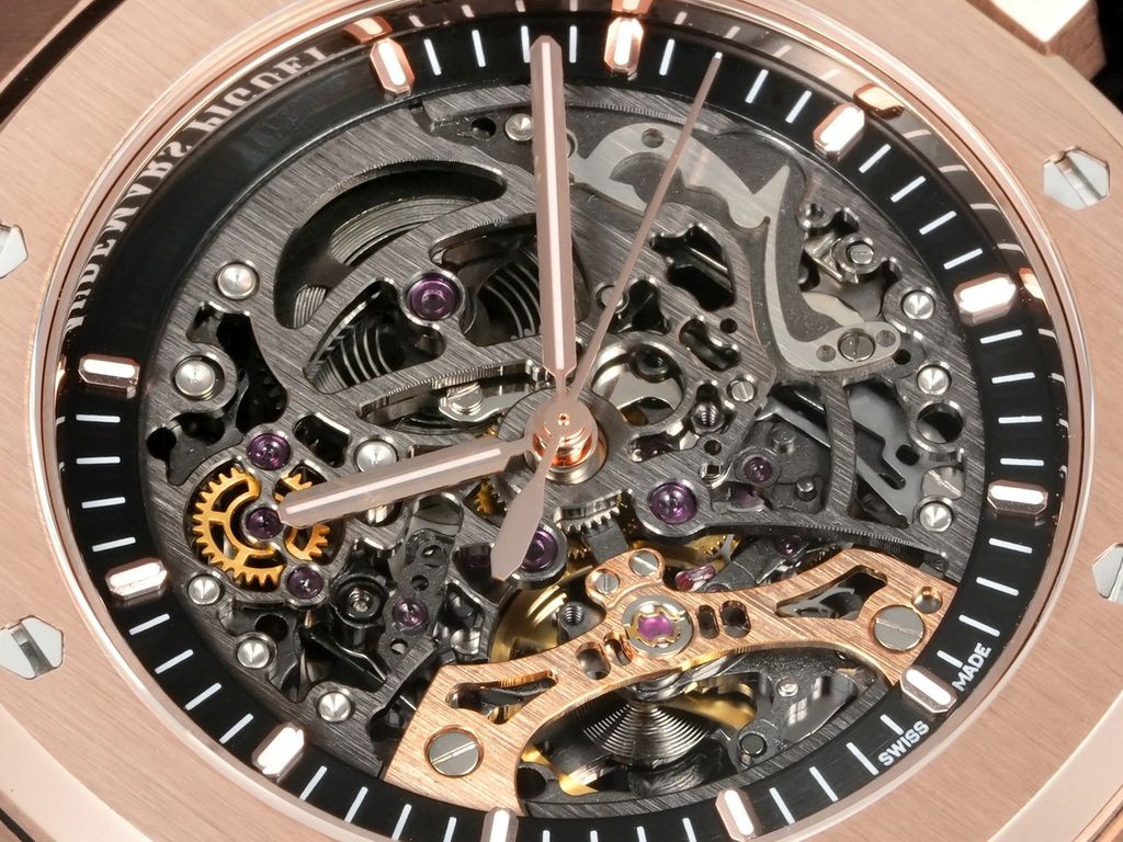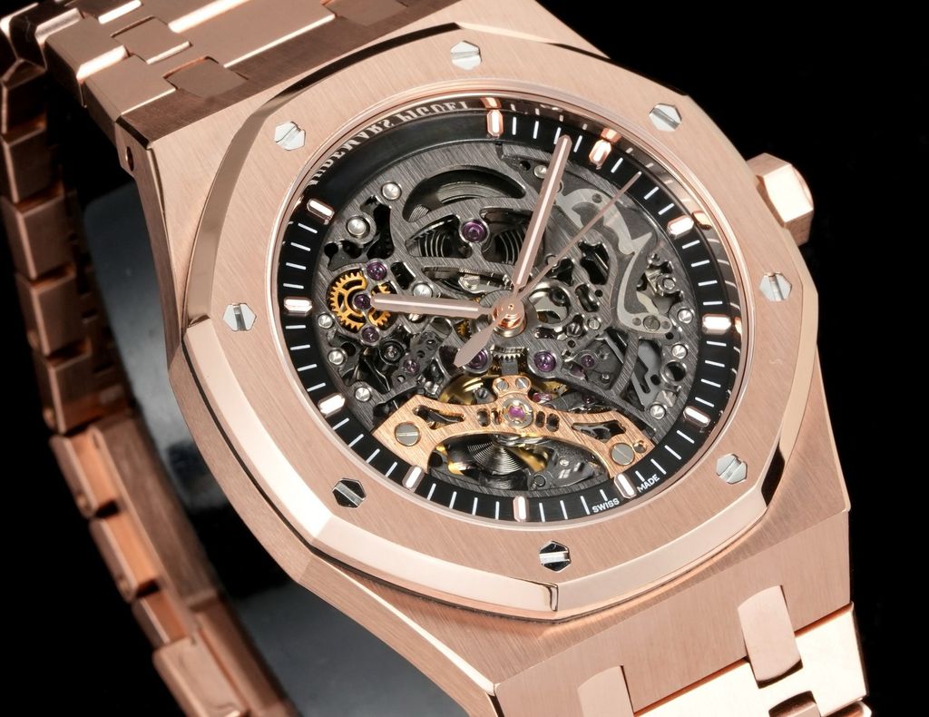 Top luxury replica watch AP Royal Oak 15407OR GR factory 41mm hollow dial 18K rose gold sapphire glass
