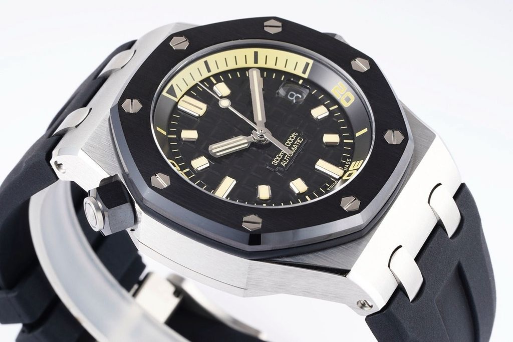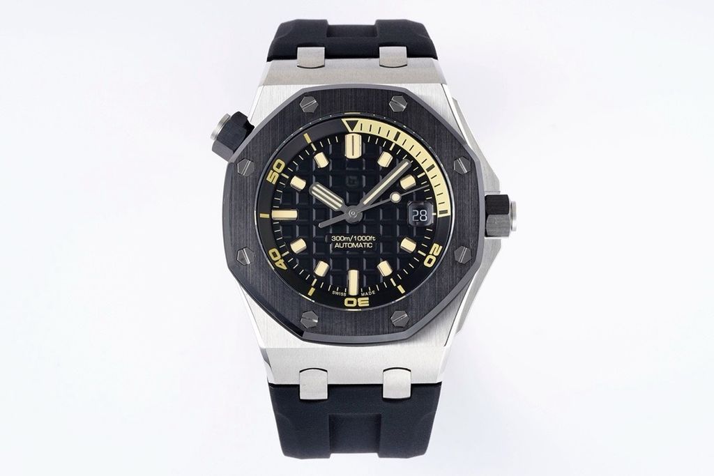 Top replica sports watch - Audemars Piguet Royal Oak Offshore 15720 Black MegaTapisserie dial 42mm ZF factory diving type rubber strap sapphire glass