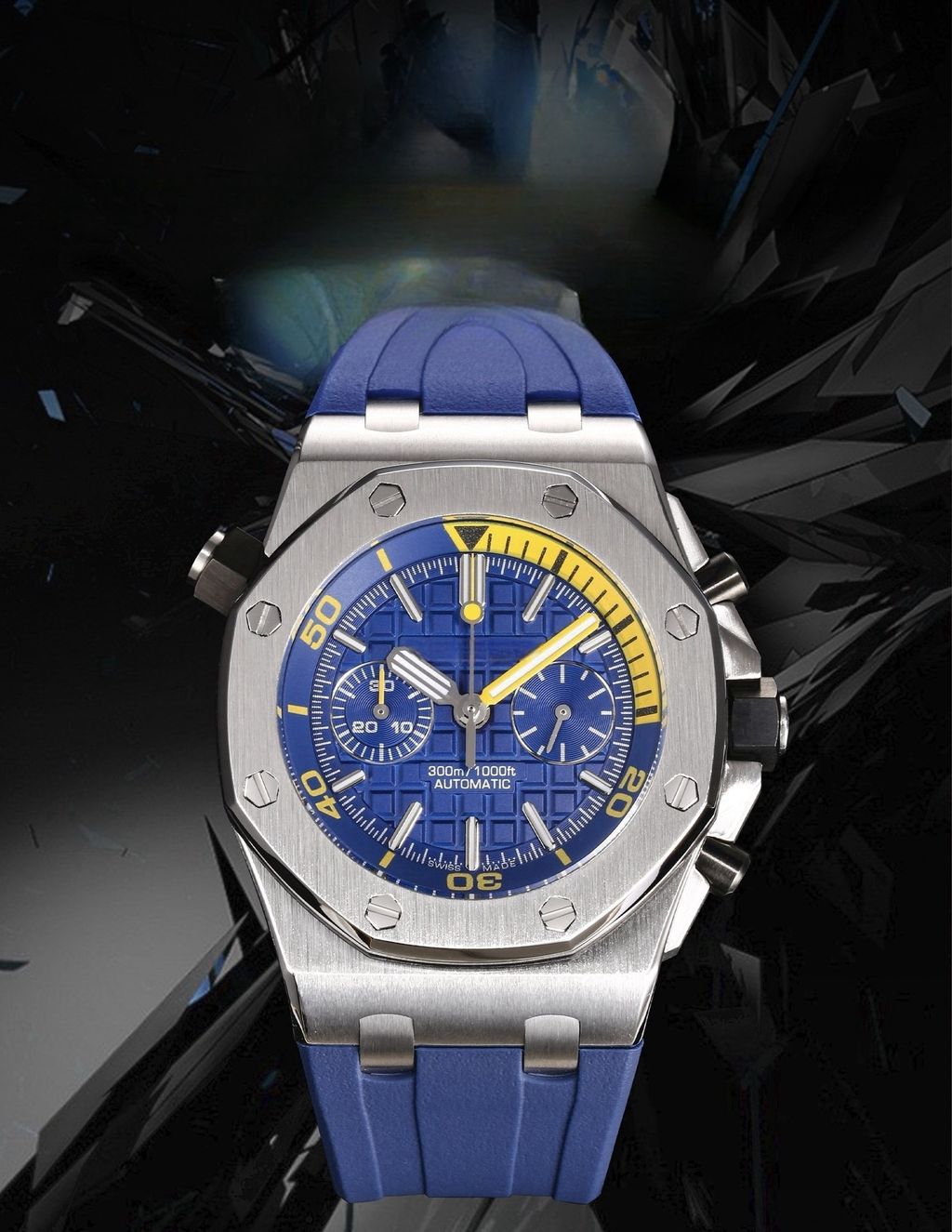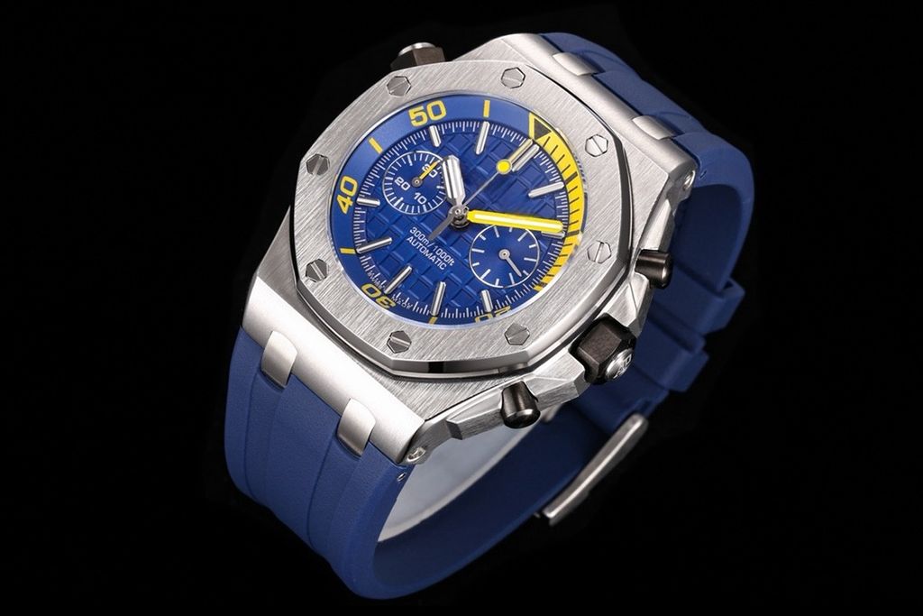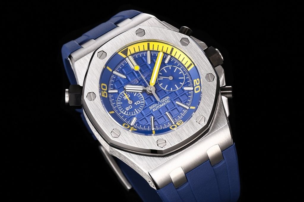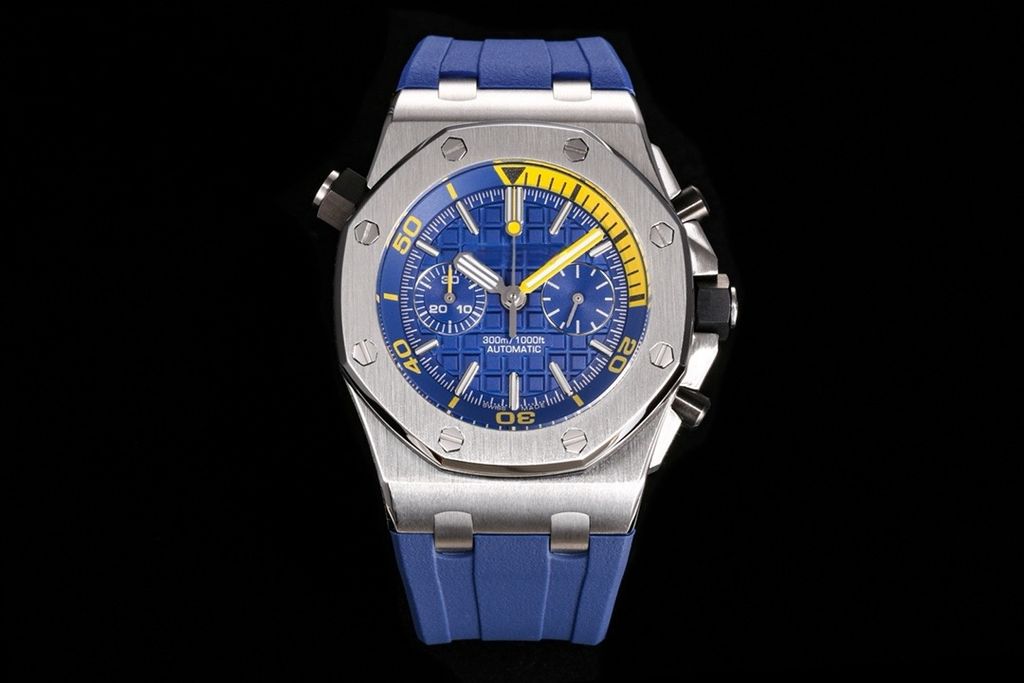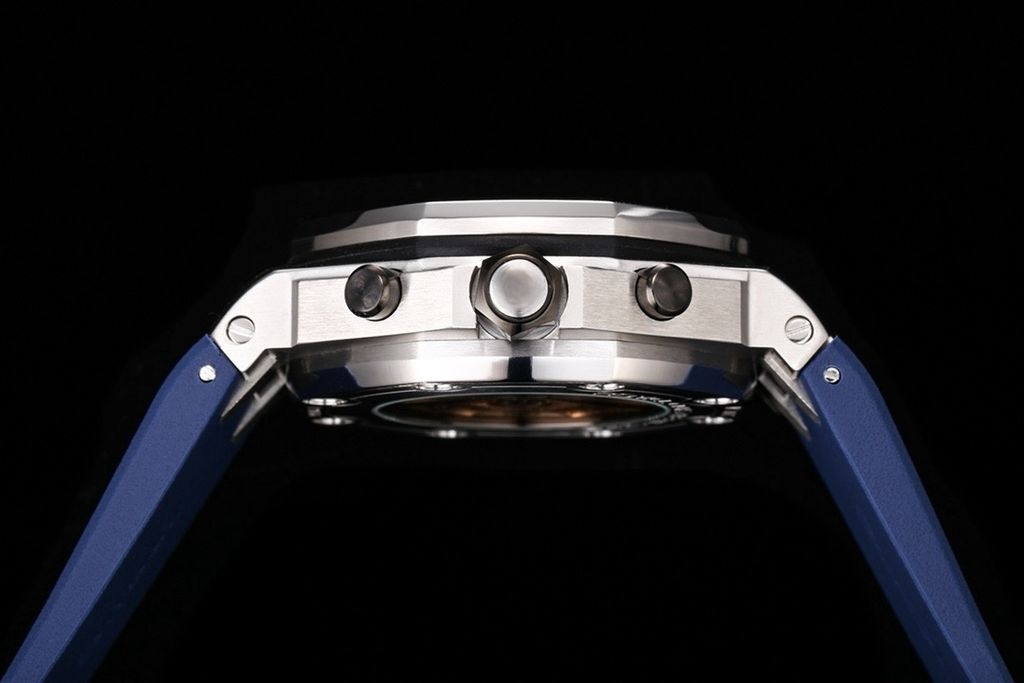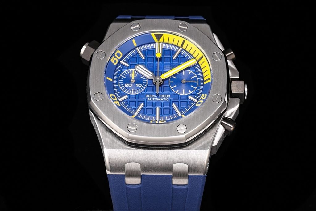 Top replica sports Audemars Piguet Royal Oak Offshore 26703 Mega Tapisserie blue dial chronograph diving 42mm JF factory rubber strap
