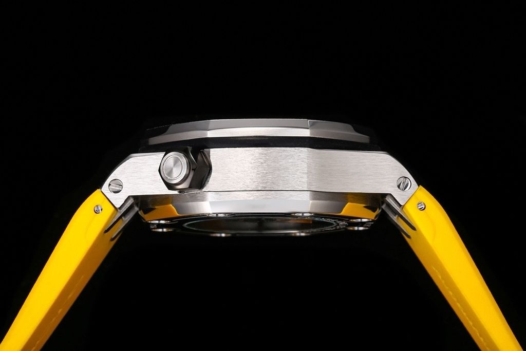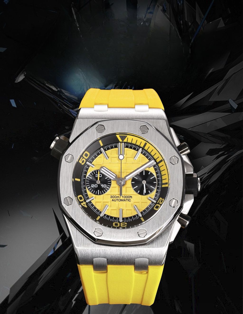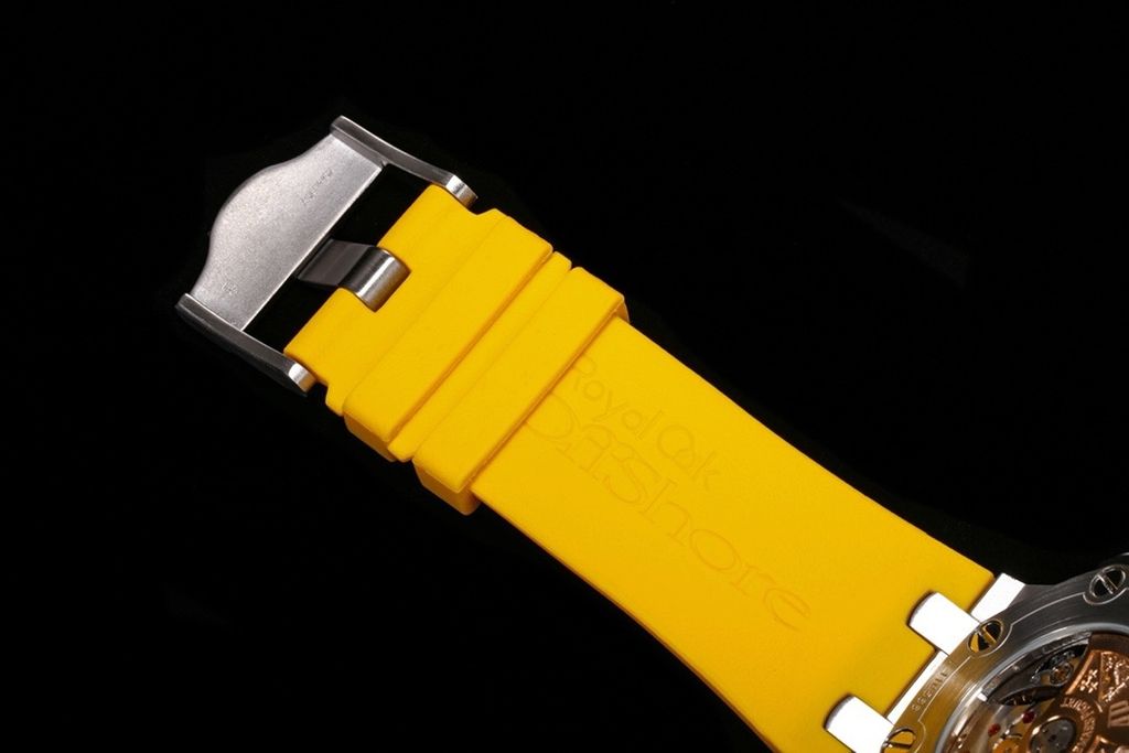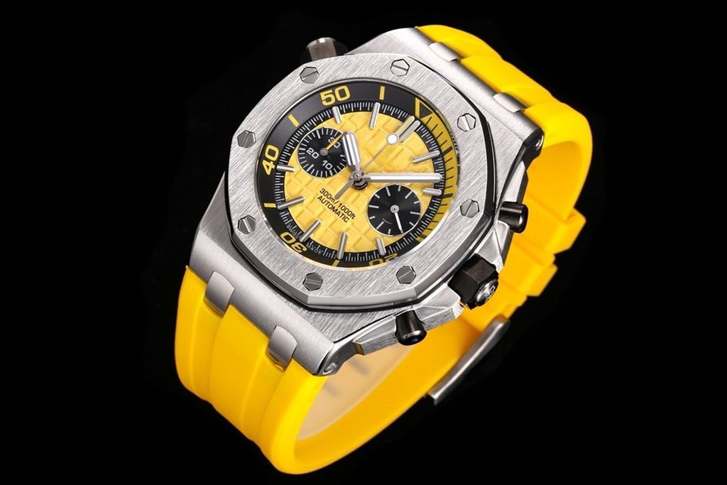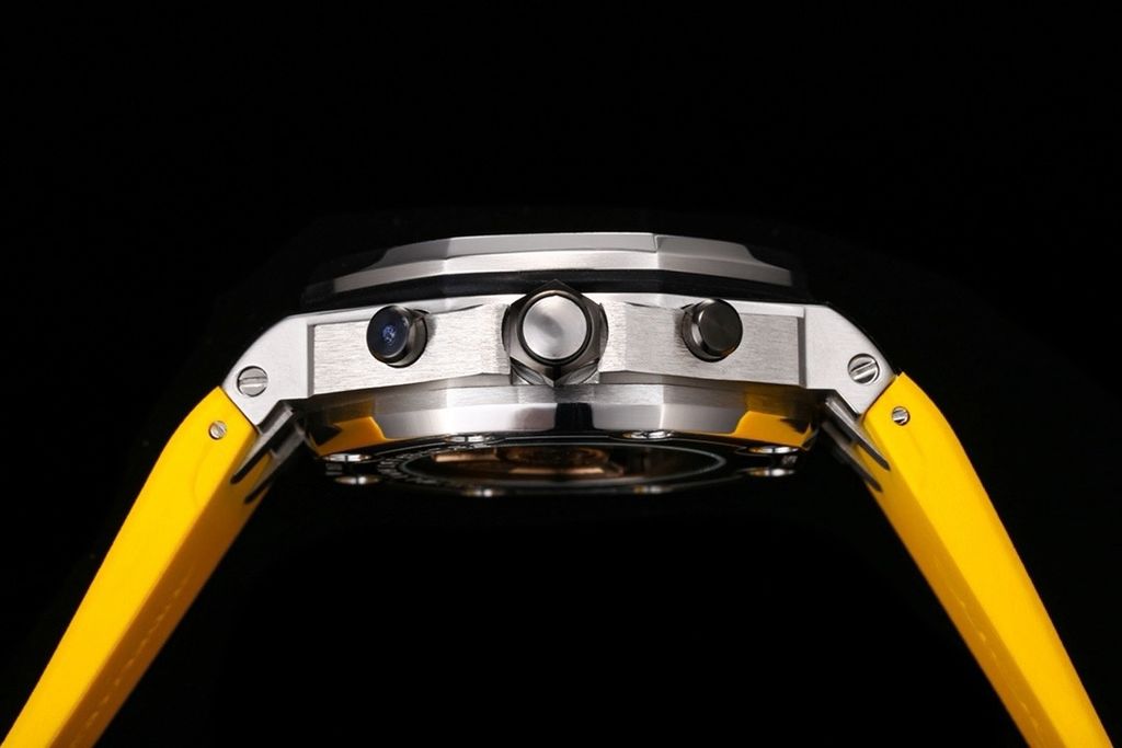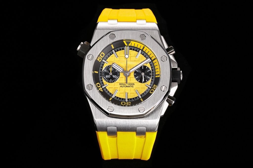Sports replica Audemars Piguet Royal Oak Offshore 26703 Mega Tapisserie Yellow Dial Chronograph Diving 42mm JF Factory Rubber Strap
