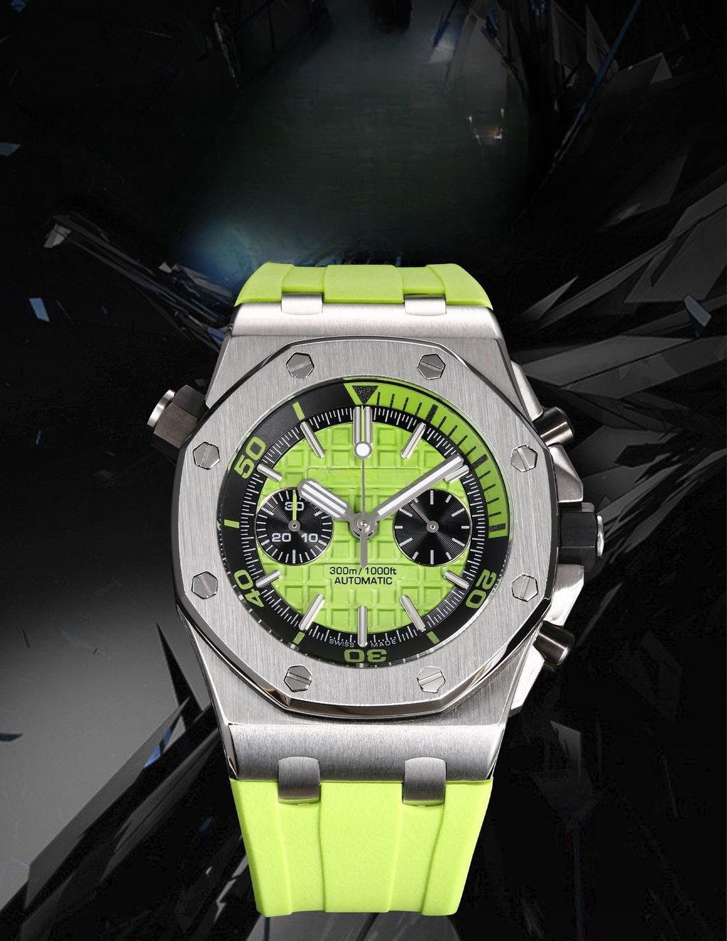 Top Sports Replica Audemars Piguet Royal Oak Offshore 26703 Mega Tapisserie Green Dial Chronograph Diving 42mm JF Factory Rubber Strap