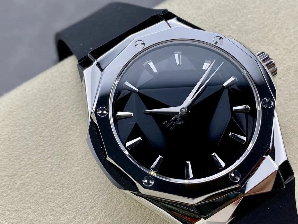 HB 40mm factory top replica Hublot Classic Fusion II three-dimensional Geneva pattern dial fluoro rubber strap