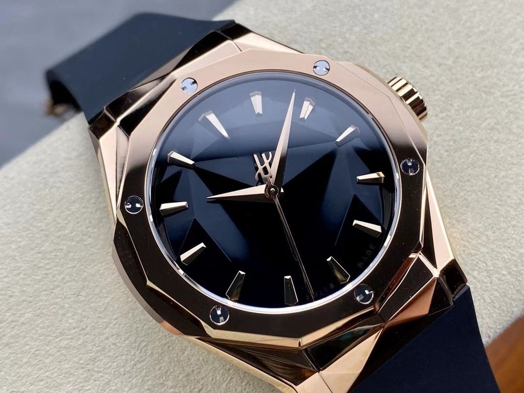 HB 40mm factory top replica Hublot Classic Fusion II three-dimensional Geneva pattern dial fluoro rubber strap