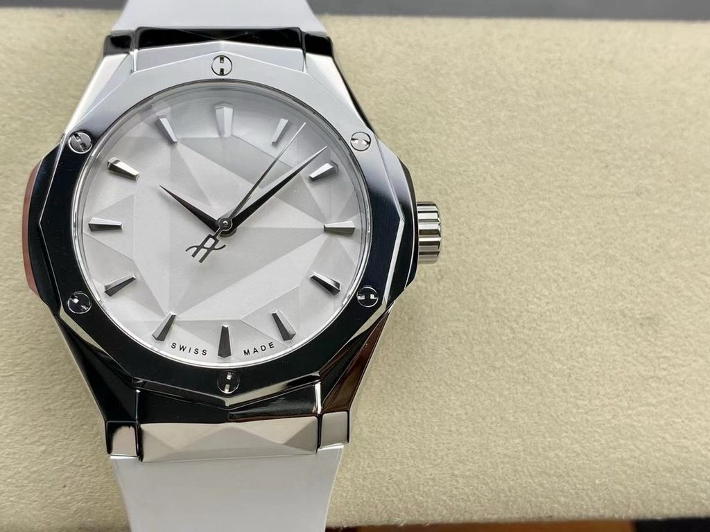 HB 40mm factory top replica Hublot Classic Fusion II three-dimensional Geneva pattern dial fluoro rubber strap